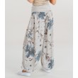 Texpak sieviešu harēma bikses ir ērtas un stilīgas. Tās ir izgatavotas no plānas, nedaudz elastīgas viskozes auduma un dekorētas ar smalku ziedu rakstu. Plata, elastīga jostasvieta un elastīga apakšmala nodrošina ērtu piegulšanu.