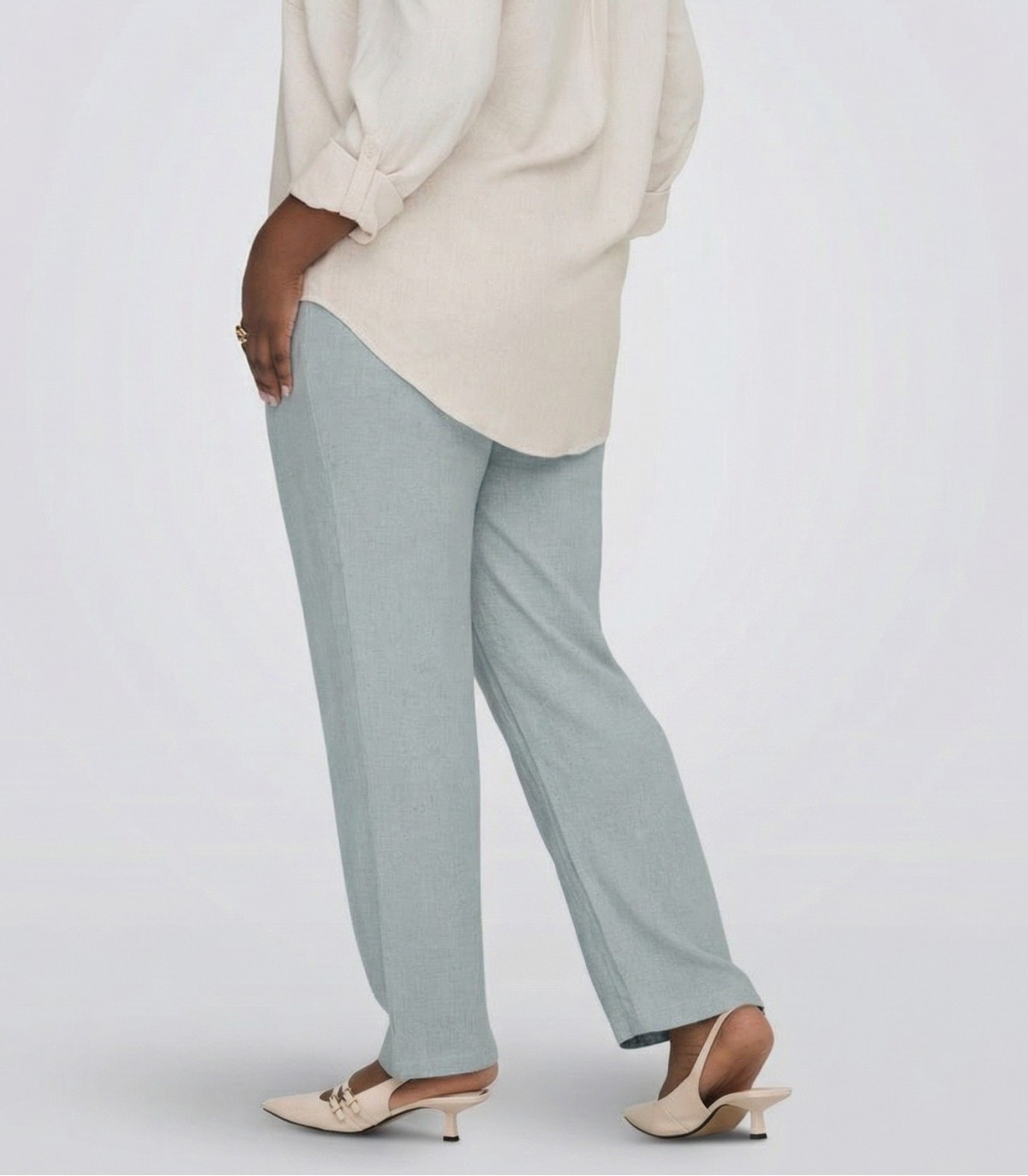 ONLY CARMAKOMA vieglās, brīvā piešūjuma plus izmēra bikses ir ērtas un viegli saskaņojamas ar dažādiem topiem. Taisnais piegriezums rada līdzsvarotu siluetu, savukārt augstā jostasvieta izceļ ķermeņa dabiskās līknes.