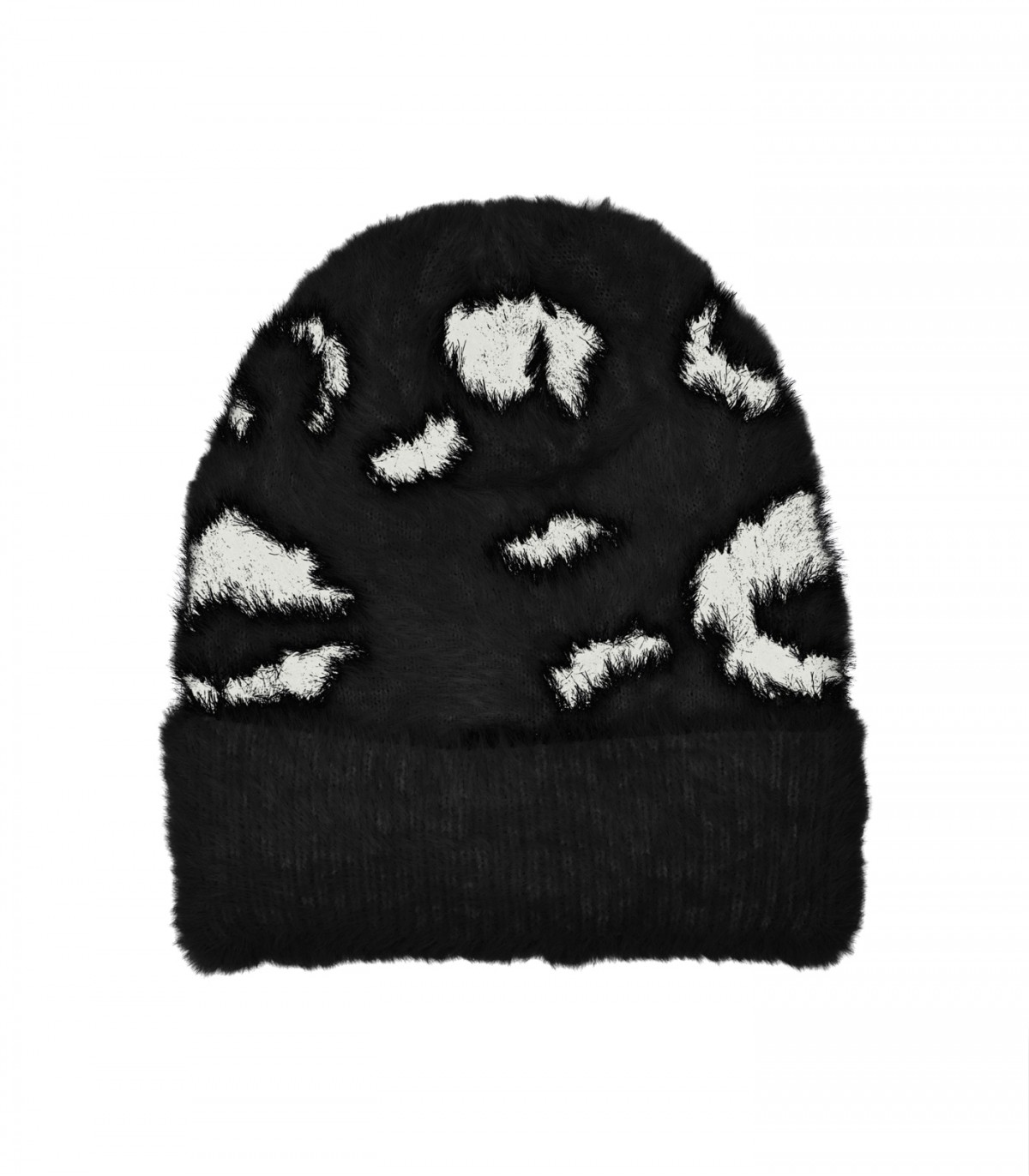 Mīksta un pūkaina, silta cepure ar dzīvnieku apdruku.