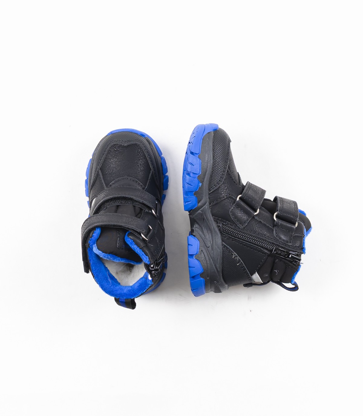 Ērti un silti ziemas zābaki zēniem melnā un zilā krāsā. Mīkstā kažokādas odere uztur pēdas siltas, un izturīgais protektora raksts uz zoles nodrošina uzticamu saķeri.