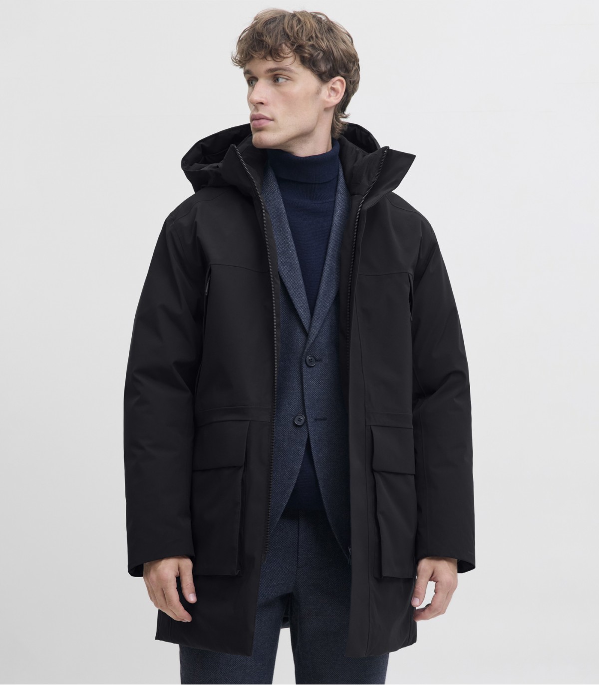 Silta un izturīga vīriešu parka aukstā laikā. Jaka ir pildīta ar siltu un ērtu poliestera izolāciju. Tai ir rāvējslēdzēja aizdare priekšpusē, krūšu kabatas ar rāvējslēdzējiem un lielas priekšējās kabatas ar atlokiem.