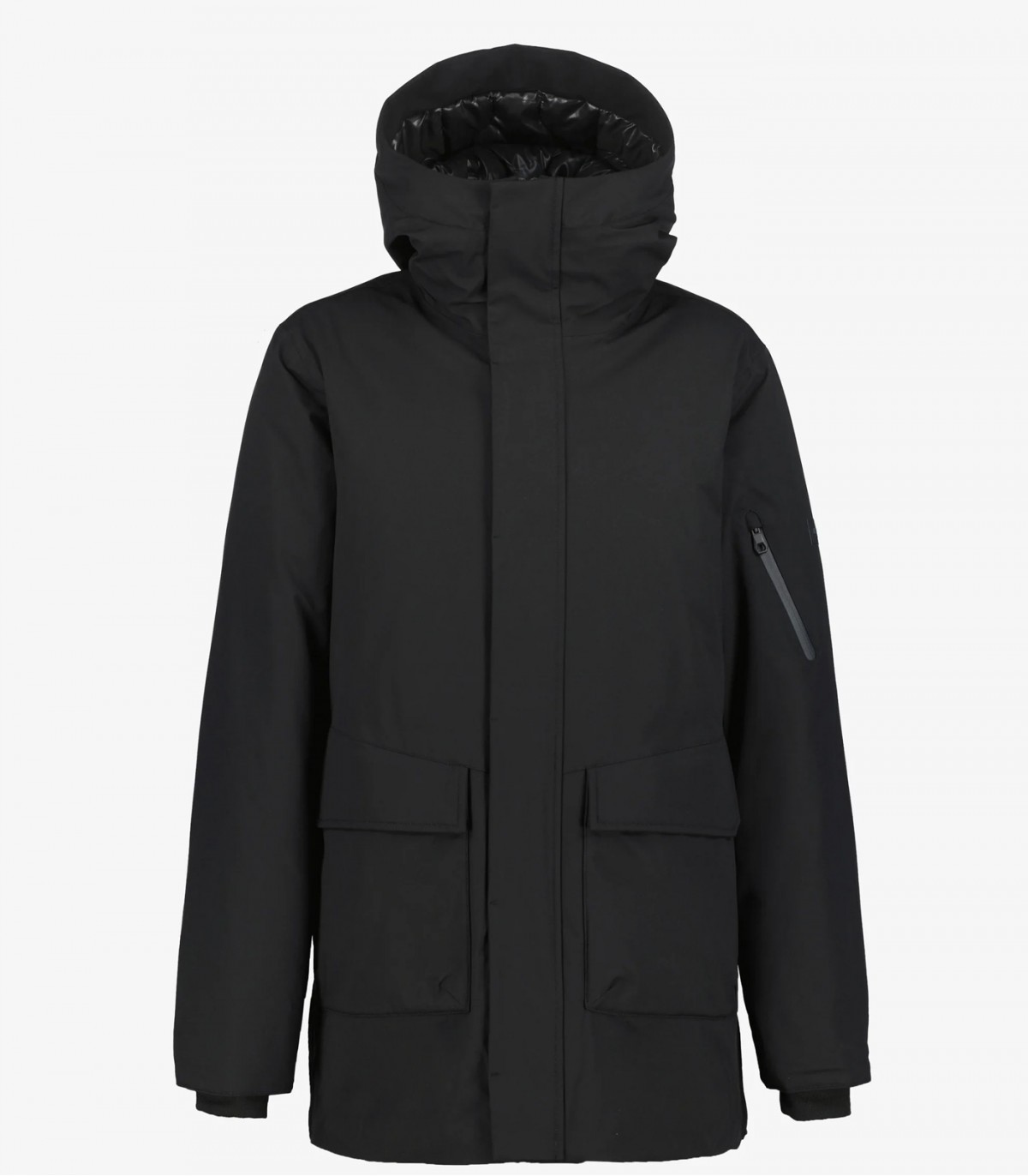 Icepeak Parka vīriešiem. Šis AWS ACTIVE produkts tika izstrādāts, koncentrējoties uz funkcionalitāti un komfortu, padarot to piemērotu gan aktīvai, gan ikdienas lietošanai. Svarīgākās vīles ir līmētas un ūdensnecaurlaidīgas. Odere ir izgatavota no dūnām, kas nodrošina lielisku izolāciju, vienlaikus saglabājot vieglu svaru. Tā ir izgatavota no divslāņu auduma, kas apvieno ūdensnecaurlaidīgu membrānu ar daudzfunkcionālu materiālu. Divvirzienu elastīgais audums uzlabo kustību brīvību. Auduma virsma ir apstrādāta ar ūdeni atgrūdošu pārklājumu.