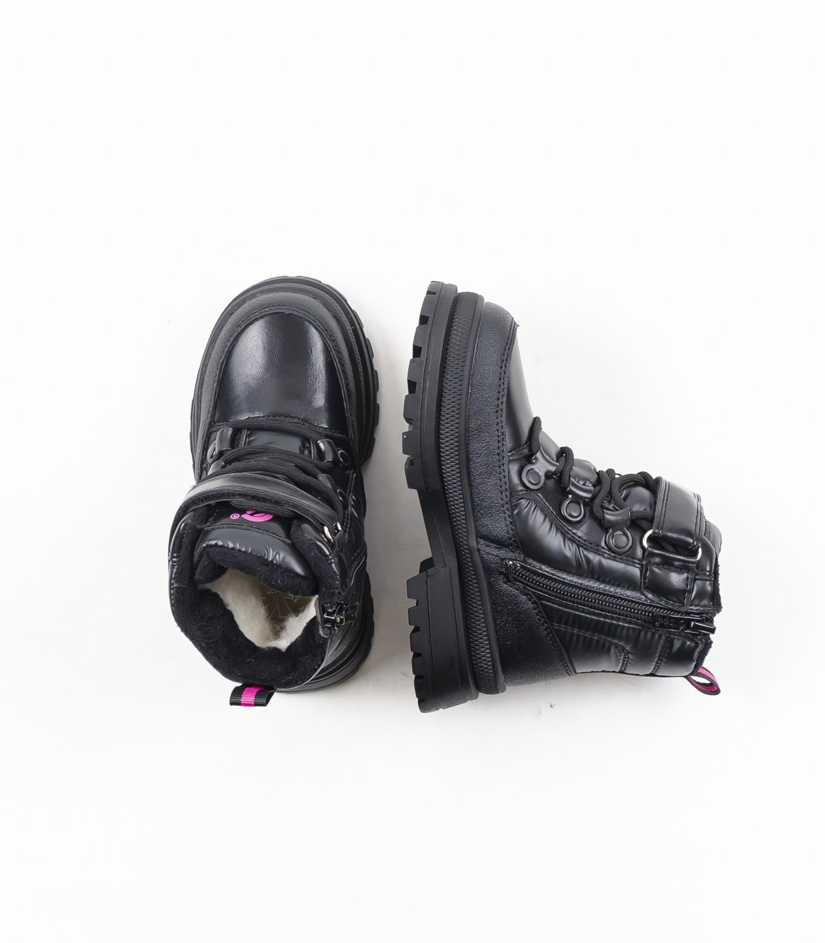 Silti melni ziemas zābaki meitenēm ir praktiski arī aukstā laikā. Kažokādas odere ir ērta un silta, un izturīgā rakstainā zole nodrošina labu saķeri uz slidenām virsmām.
